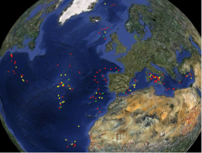 I løpet av dette arbeidet fant jeg informasjon om til sammen 95 undersjøiske fjell i Nord-Atlanteren og Middelhavet (se kart). Dette er en svært liten del av det antallet undersjøiske fjell man tror finnes i disse områdene, som ligger på rundt 18 000 (tall publisert i 2011). Det er altså en minimal andel undersjøiske fjell som har vært undersøkt, selv i Nord-Atlanteren- og Middelhavsområdene. Og ikke nok med det, selv for de fjellene som har vært studert er kunnskapen generelt sett lav. Gjennomsnittlig ble over to tredjedeler av SEEF kategoriene skåret som ukjent for disse 95 fjellene.