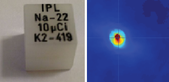 Skannerens romlige oppløsning er viktig å bestemme. Romlig oppløsning er et mål på hvor tett to små objekt kan ligge, og fremdeles være skilt fra hverandre på det endelige bildet. Jeg målte romlig oppløsning ved å skanne en punktkilde, og så måle på resultatbildene hvor stor kilden opptrer. Som navnet tilsier er en punktkilde en svært liten radioaktiv kilde som er tilnærmet lik et punkt.