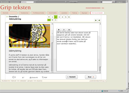 Figuren viser et skjermbilde fra et kurs i ressursen Skriveverkstedet. Denne ressurser har flere likheter med bokmediet.